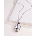 Infused with an elegantly elongated silver chain, a dramatic teardrop gem swings from the bottom of a white rhinestone encrusted silver fitting, creating a hypnotic pendant. Features an adjustable clasp closure.