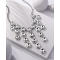 Encased in sleek silver fittings, dramatically oversized white rhinestones delicately link into twinkly tassels that taper off into a jaw-dropping fringe below the collar. Features an adjustable clasp closure.