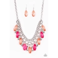 Infused with a row of thick silver chain, faceted silver and glassy pink and coral beads swing from the bottom of ornate silver links, creating a vivacious fringe below the collar. Features an adjustable clasp closure.