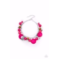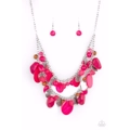 Infused with wooden beads and silver discs, an earthy collection of glassy, opaque, and shell-like Raspberry Sorbet beads swings from two silver chains. The vivacious display effortlessly layers below the collar, creating a springtime inspired fringe. Features an adjustable clasp closure.