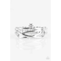 Glistening silver bars wrap across the finger, creating a layered band. A dainty white rhinestone dots the top of the crisscrossing bands, adding a colorful finish to the casual palette. Features a small dainty stretchy band for a flexible fit.