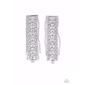 Set in square silver fittings, strands of sparkly white rhinestones streams out from the bottom of a rectangular silver frame. Flanked by dainty silver ball chains, the sparkling fringe tapers into a tangible twinkle. Earring attaches to a standard post fitting.