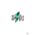 Featuring elegant marquise style shapes, hematite rhinestone encrusted silver frames and glittery green rhinestones connect across the finger for an edgy-glamorous look. Features a stretchy band for a flexible fit.