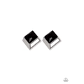 Featuring a refined square-cut, a faceted black rhinestone is pressed into a 3-dimensional silver frame for an edgy look. Earring attaches to a standard post fitting.