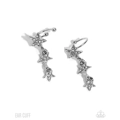 Featured atop a silver barbell-inspired cuff, a trio of interconnected silver stars filled with countless white rhinestones and subtle silver studs gradually decrease in size and cascade below the ear for a show-stopping finish.