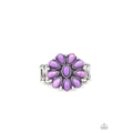 Featuring oval and teardrop shapes, vivacious purple stones are pressed into a studded silver frame, creating an earthy flower atop the finger. Features a stretchy band for a flexible fit.