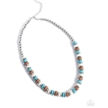 Infused along a silver ball chain, a collection of turquoise, white, and light brown stone discs alternate with silver discs below the neckline for a simply stony centerpiece. Features an adjustable clasp closure. As the stone elements in this piece are natural, some color variation is normal.