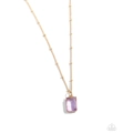 Featuring a faceted finish, a transparent purple emerald-cut gem glimmers from a gold-pronged frame. Gliding along a gold satellite chain, the solitaire pendant adds an eye-catching splash of color to the elegant design. Features an adjustable clasp closure.