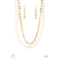 A string of classic white pearls is layered with a strand of oversized gold links, creating a gorgeous collision of refinement and grit as they lay along the collar. Features an adjustable clasp closure.