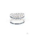 Dainty blue rhinestones are encrusted along two glistening silver bars, coalescing into a glittery band for a refined look. Features a stretchy band for a flexible fit.