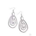 Dainty white teardrop beads trickle down the front of a rippling silver teardrop frame, resulting in a colorfully tiered display. Earring attaches to a standard fishhook fitting.
