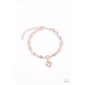 Brilliant white rhinestones in rose gold settings are linked together and accented with a charming white rhinestone heart that dangles sweetly from the wrist. Features an adjustable clasp closure.