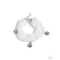 Streaming from horizontal silver fittings, strand after strand of milky white beads in various sizes are threaded along invisible strings along the wrist for a colorful display. A trio of silver spirals swing along the milky white beads for additional interest and detail. Features an adjustable clasp closure.