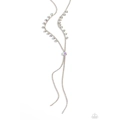 Attached to a section of dainty silver chain, iridescent rhinestones, pressed into shiny silver box chain fittings swing down the neckline in a lariat-like manner for an effulgent glow. Sporadically dancing along the box chain, exaggerated iridescent rhinestones in solitaire square fittings adorn the sparkly display for additional refinement and class. An emerald-cut iridescent gem rests along the decadent display, separating the iridescent chain into two strands. Features an adjustable clasp closure. Due to its prismatic palette, color may vary.