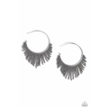 Cascading strands of gunmetal seed beads stream out from the bottom of a classic silver hoop, resulting in a flirtatiously tasseled look. Earring attaches to a standard post fitting. Hoop measures approximately 1 1/2" in diameter.