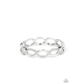 Silver bars elegantly intertwine into infinity inspired frames that delicately hinge around the wrist. The front of the flawless centerpiece is dusted in a wavy row of white rhinestones, adding a timeless twinkle to the versatile design. Features a hinged closure.