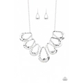 Delicately hammered in shimmer, a collection of shiny silver teardrops link below the collar for an edgy statement-making look. Features an adjustable clasp closure.