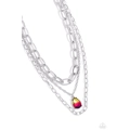 A trio of mismatched silver chains coalesces down the neckline for a monochromatic masterpiece. Strung on the middle chain, a pronged glassy teardrop with an ombré effect of yellow to pink to purple stands out and reflects light in every direction for a statement finish. Features an adjustable clasp closure.