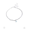 A double-stranded silver satellite snake chain loops around the collar. A transparent green teardrop bead adds a soft splash of color to the design for a feminine finish. Features an adjustable clasp closure.
