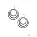 A collision of smooth and textured silver hoops trickle from the ear for a versatile look. Earring attaches to a standard fishhook fitting.