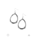 Decorated in metallic rope-like textures, a studded silver teardrop frame is stamped and etched in tribal inspired patterns for a rustic flair. Earring attaches to a standard fishhook fitting.