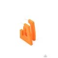 Painted in a neon orange finish, a distressed wooden frame curves around the ear, creating a rectangular hoop for a retro effect. Earring attaches to a standard post fitting. Hoop measures approximately 1" in diameter.