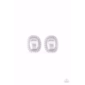 A faceted white gem is pressed into a shimmery silver frame radiating with glassy white rhinestones for a timeless fashion. Earring attaches to a standard post fitting.