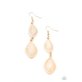Featuring shimmery faceted surfaces, cloudy faux stone beads are pressed into sleek gold frames that link into a whimsically refined lure. Earring attaches to a standard fishhook fitting.