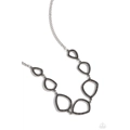 Encrusted in smoky hematite rhinestones, asymmetrical teardrop and geometric silver frames delicately link below the collar for a refined edge. Features an adjustable clasp closure.