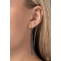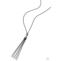 Attached to a clasp closure that glides along a classic gunmetal chain, a sleek gunmetal fitting cascades down the chest, creating a fiercely stacked pendant. Sleek gunmetal snake chains swing from the bottom of the fitting, creating an eye-catching fringe. Features an adjustable clasp closure.