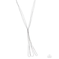 A collection of delicate silver ball chains cascades into a dramatic Y-shaped silhouette. A sleek cylindrical accent gathers the chains at the center, allowing them to flow into striking snake chain loops at the bottom. Features an adjustable clasp closure.