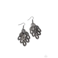 Dizzyingly layered oval gunmetal frames swing from interlocking gunmetal links, creating a twinkly movement as it flutters from the ear. Earring attaches to a standard fishhook fitting.
