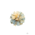 Featuring yellow and blue tie-dyed accents, scalloped petals gather in a colorful flower. Features a standard hair clip on the back.