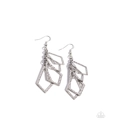 Hammered trapezoidal silver frames trickle from a dainty silver chain, cascading into an edgy geometric tassel. Earring attaches to a standard fishhook fitting.
