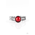 A fiery red bead is pressed into the center of a dainty silver band radiating with studded detail for a seasonal look. Features a dainty stretchy band for a flexible fit.
