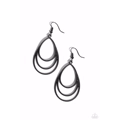 Three studded gunmetal teardrops delicately stack into a solitaire frame, creating a trendy tiered look. Earring attaches to a standard fishhook fitting.