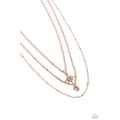 Three dainty rose gold chains layer across the chest, creating a tiered display of high sheen texture. A rose gold star topped with a small rhinestone swings from the upper most chain, while a solitaire rhinestone slides along the middle strand. The delicate design is topped off by the satellite chain, which adds a hint of texture. Features an adjustable clasp closure.