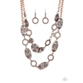 Delicately hammered in shimmery textures, mismatched copper frames link below the collar in two seasonal layers. Features an adjustable clasp closure.