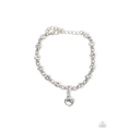 A white rhinestone heart charm dances from a strand of white rhinestones, resulting in a flirtatious sparkle around the wrist. Features an adjustable clasp closure.