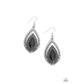 Textured curls of high-sheen silver wrap around a studded teardrop frame. Pressed in the center of the studded frame, a vibrant black teardrop stone rests for an earthy pop of color. Separating the spirals from the studs, an airy backdrop is incorporated into the design to draw attention to the ear. Earring attaches to a standard fishhook fitting. As the stone elements in this piece are natural, some color variation is normal.