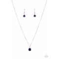 A glittery blue rhinestone is fitted inside a pronged silver frame, creating a dramatically timeless pendant below the collar. Features an adjustable clasp closure.
