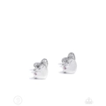 Dotted with a solitaire light rose rhinestone, sleek silver hearts curl along both sides of the ear on a barbell-inspired silver bar creating an adjustable, one-size-fits-all romantic cuff.