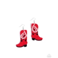 Featuring a chic cowboy boot design, vivid red, white and black seed beads intricately detail a paisley pattern. Perfect for adding a playful, western-inspired flair to any outfit. Earring attaches to a standard fishhook fitting.