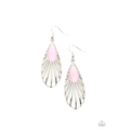 Reminiscent of a butterfly wing, shiny silver bars flare out from an opaque Pale Rosette teardrop bead and delicately connect into a whimsical frame. Earring attaches to a standard fishhook fitting.