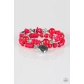 Varying in shape and shimmer, vivacious pink and iridescent crystal-like beading are threaded along elastic stretchy bands, creating a pair of colorful bracelets. Embossed in floral patterns, a vintage inspired heart charm swings from the wrist for a romantic finish.